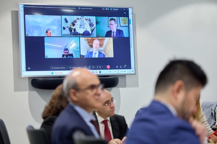 Posteriormente, y como es habitual, el primer bloque de la Junta sirvió para hacer repaso de las relaciones bilaterales España – Japón, con las intervenciones del subdirector de Asia Oriental y Meridional del Ministerio de Asuntos Exteriores, Guillermo Anguera; el embajador de Japón en España, Takahiro Nakamae, y el embajador de España en Japón, Fidel Sendagorta, que intervino a través de videoconferencia desde Tokio.