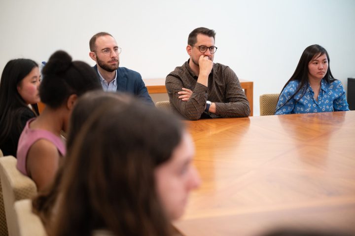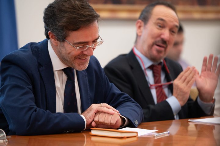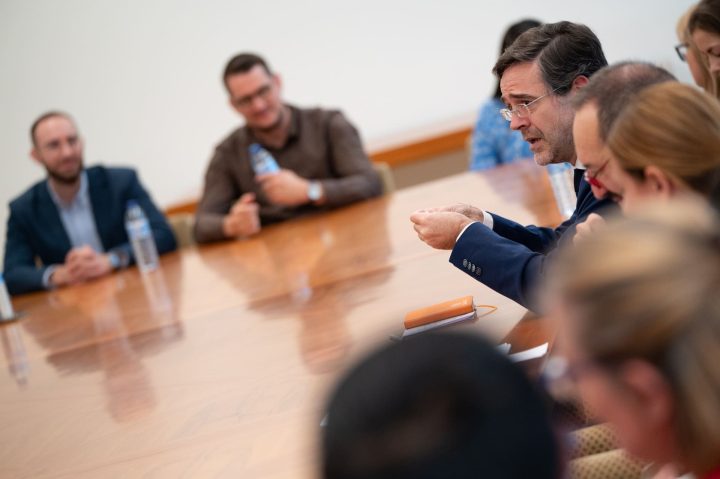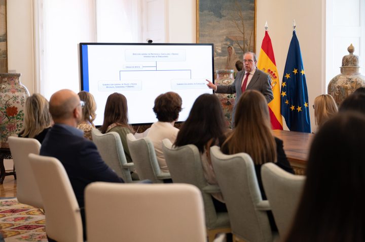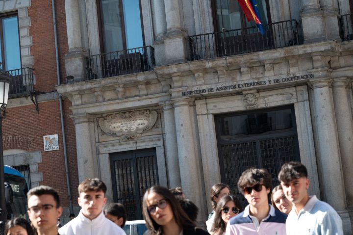 La jornada empezó en el Palacio de Santa Cruz, sede histórica del Ministerio, de la mano del jefe de Ceremonial, Enrique de Álvaro. Posteriormente, se reunieron con la introductora de Embajadores y directora general de Protocolo, María Sebastián de Erice.